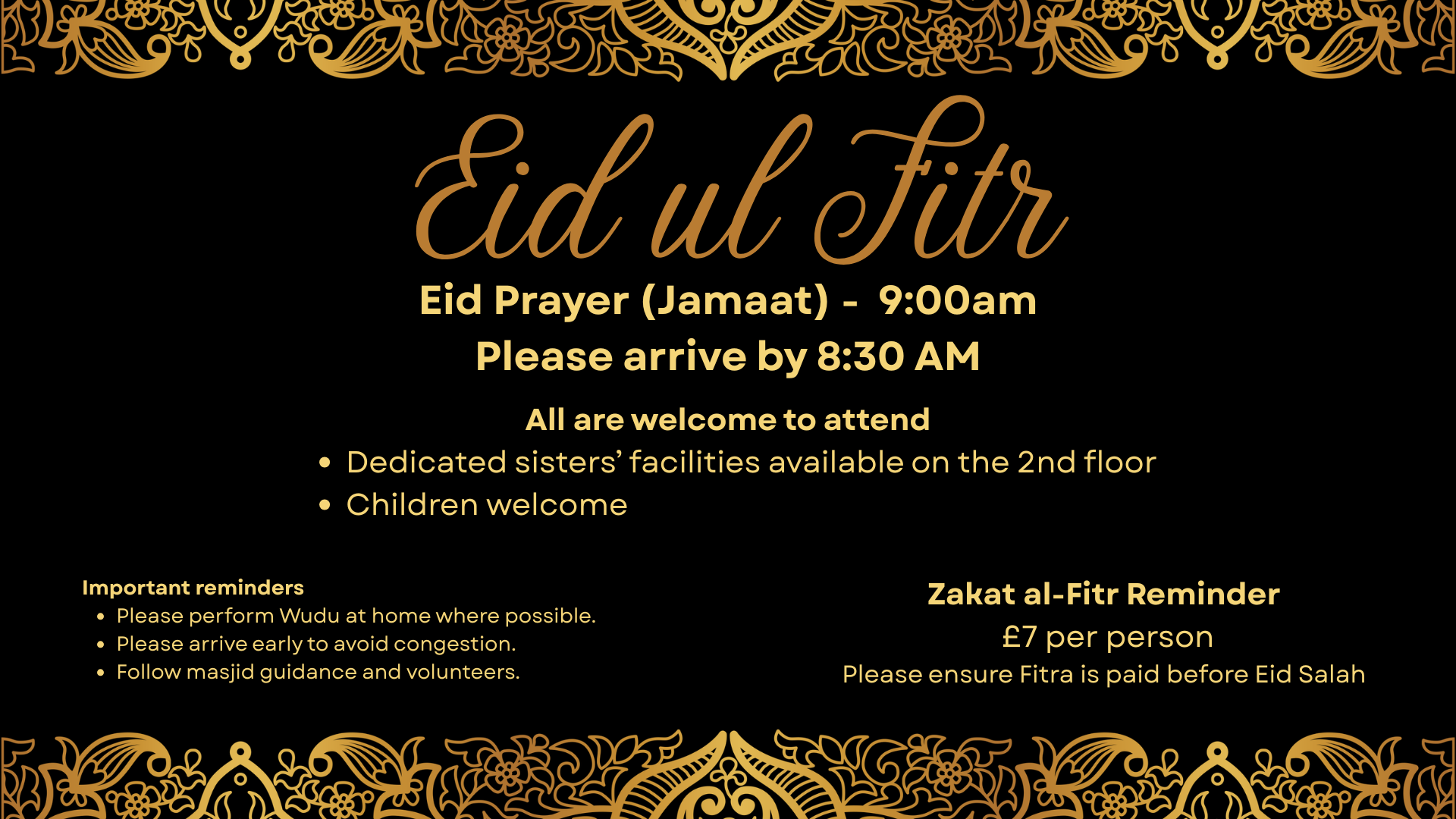 | Isha | 7:40 pm | 8:00 pm |